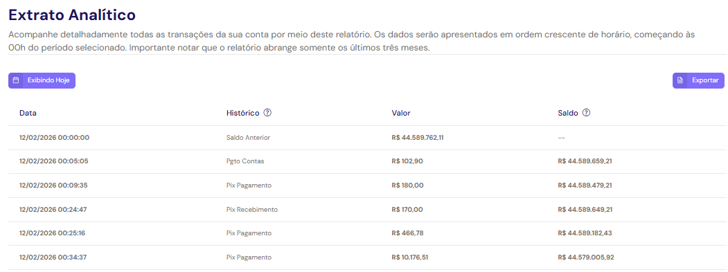 Para acessar o relatório de extrato analítico no Painel do Cliente vá até o menu Relatórios > Extrato Analítico.