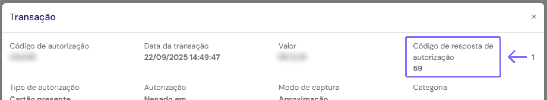 Por fim, consulte o código de resposta de autorização (seta 1) na tabela a abaixo: