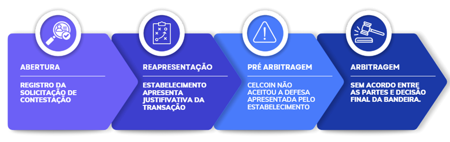 Nessa fase, denominamos como “Reapresentação” a fase em que o estabelecimento pode enviar documentos e comprovantes que justifiquem a transação — como comprovante de entrega, nota fiscal ou autorização da compra.