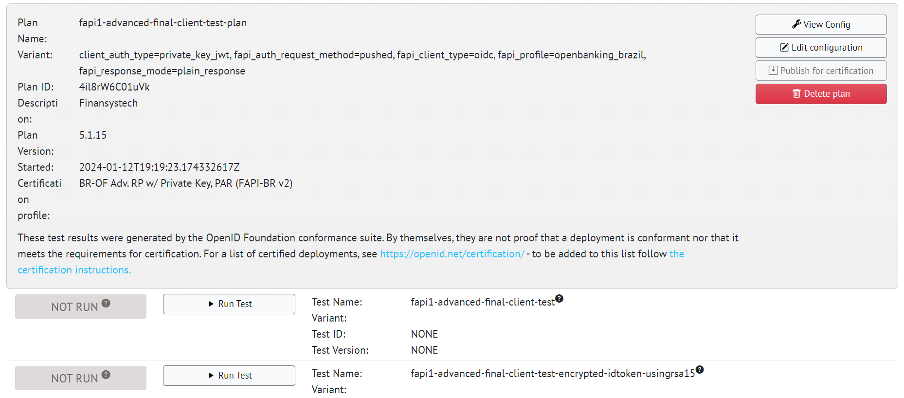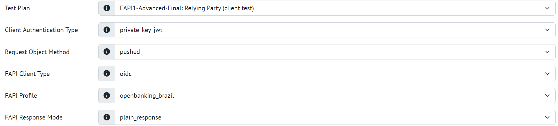 - "Test Plan": selecione FAPI1-Advanced-Final: Relying Party (client test);