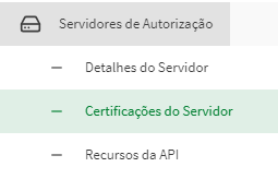 - Em seguida, acesse "Servidores de Autorização" > "Certificações do Servidor";