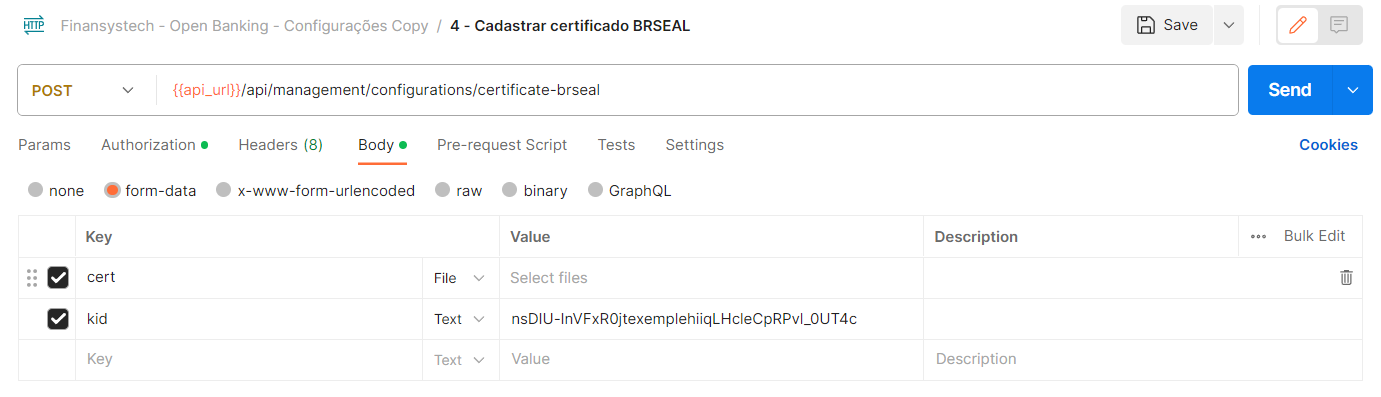 - Acesse a etapa "4 - Cadastrar certificado BRSEAL";