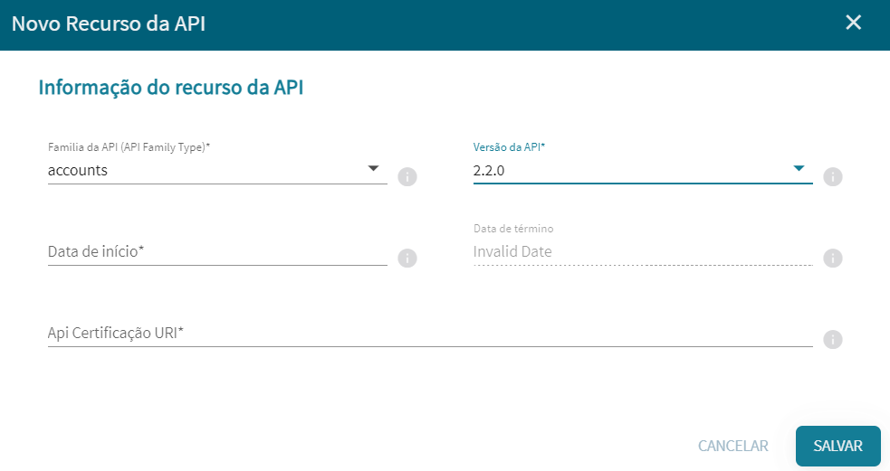 - API Certificação URI: adicione a URL da certificação recebida através do Service Desk após a submissão dos testes (se houver);