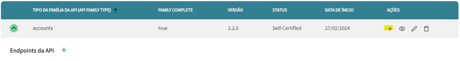 - Ao salvar, aparecerá a família da API na lista, clique no + para adicionar os endpoints;