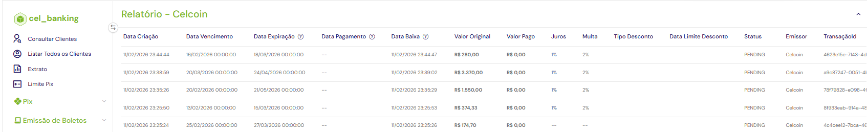 É um relatório que mostra informações sobre os boletos emitidos, incluindo suas datas de vencimento, pagamento, baixa e expiração.