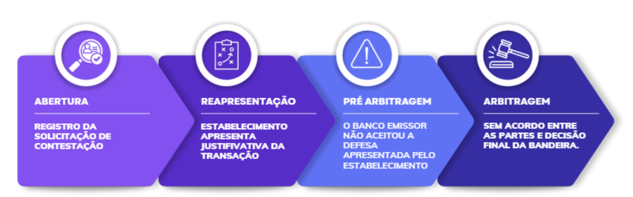 - Arbitragem – Se não houver acordo entre as partes, a decisão final é tomada pela bandeira do cartão, que define o resultado da disputa.
