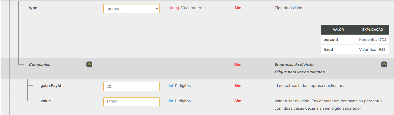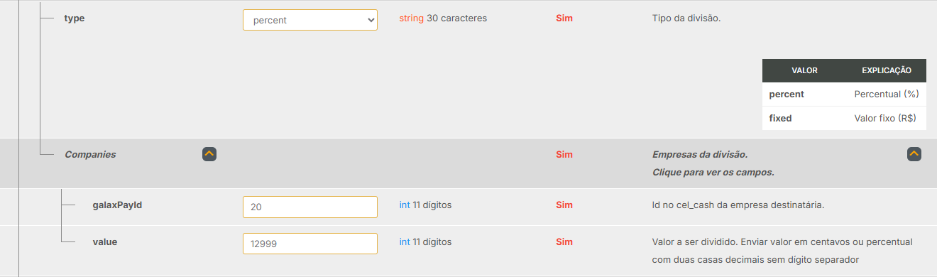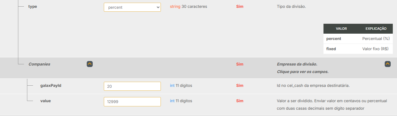 | all | Não | Configuração geral de split para qualquer método de pagamento |