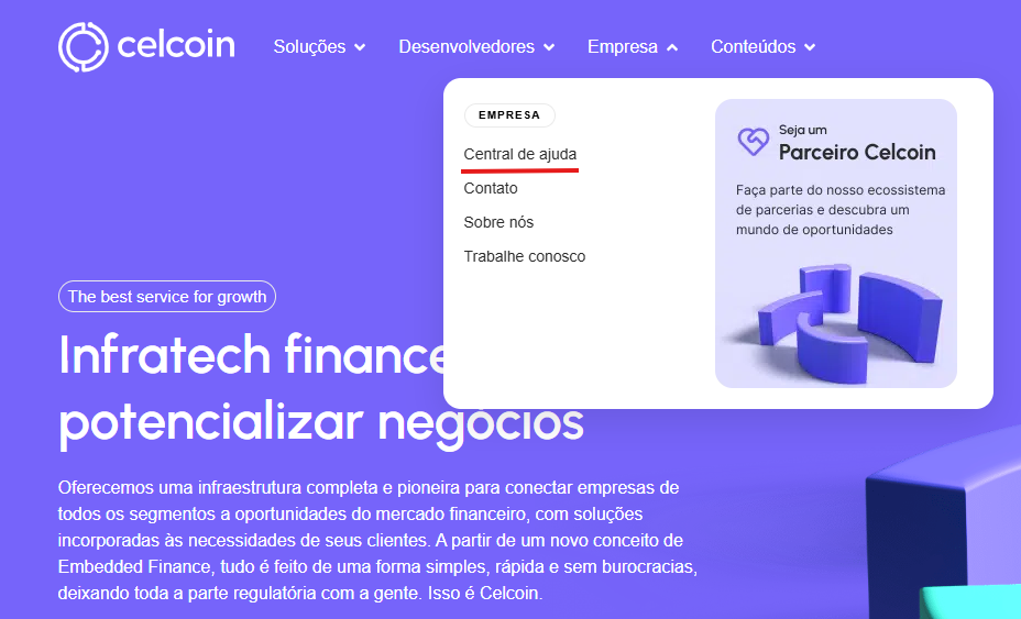 Você pode utilizar o link acima ou acesse celcoin.com.br -> Empresa -> Central de ajuda:
